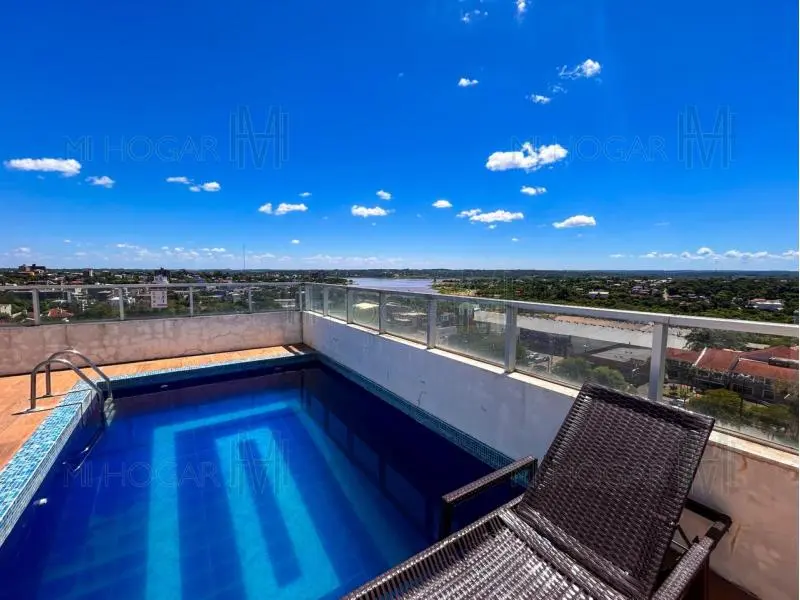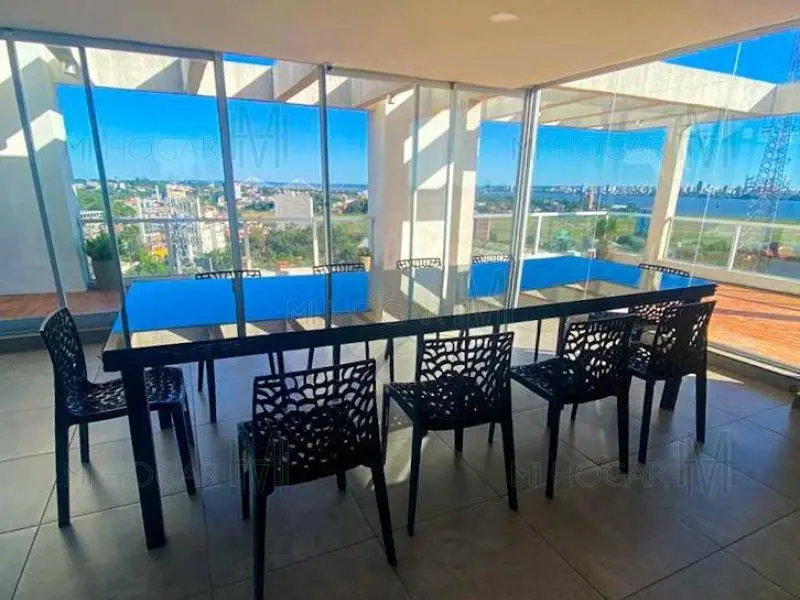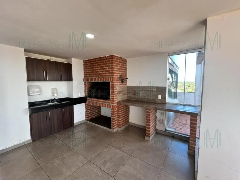 El edificio cuenta con terraza con quincho y piscina como amenities destacados.